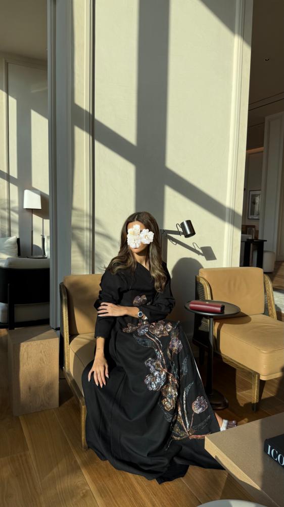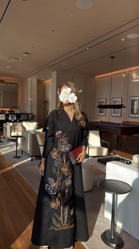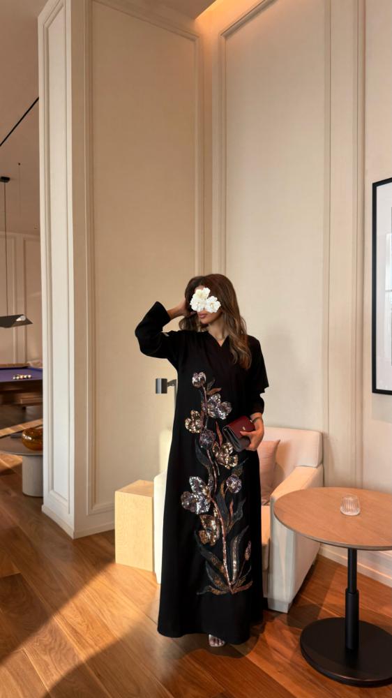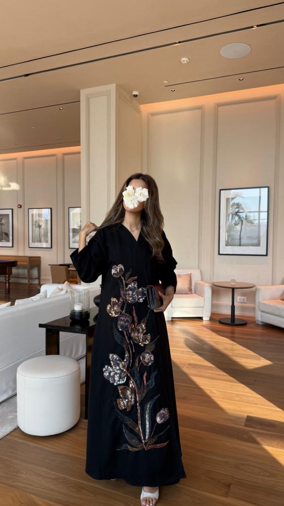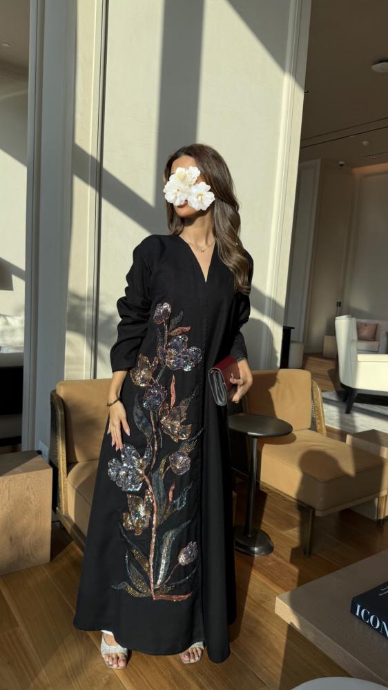 قماش العبايه : كريب كوري مع تطريز كامل العبايه في جهة وحده فقط