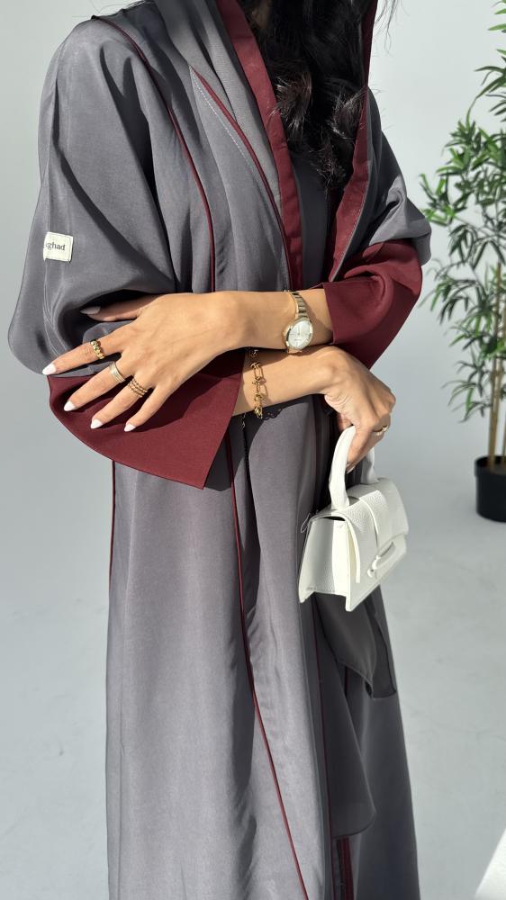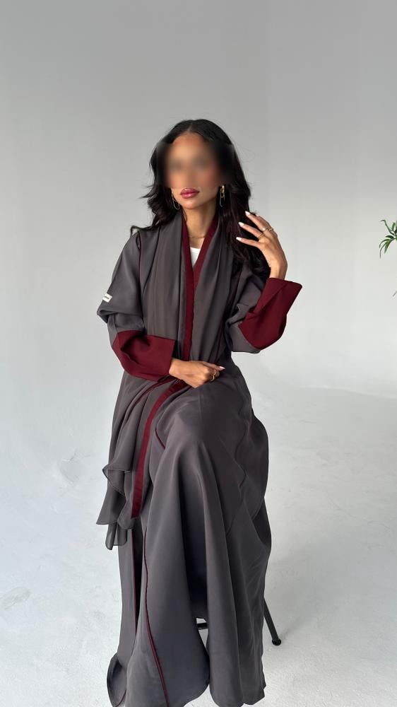 القماش حرير مغسول كوري باللون الرصاصي والاكمام عودي