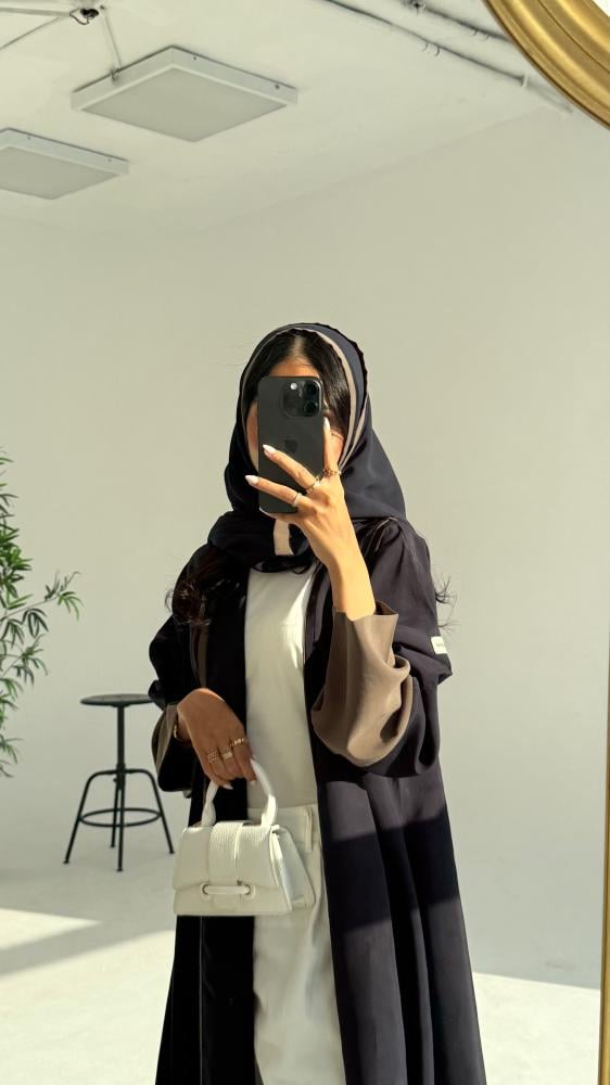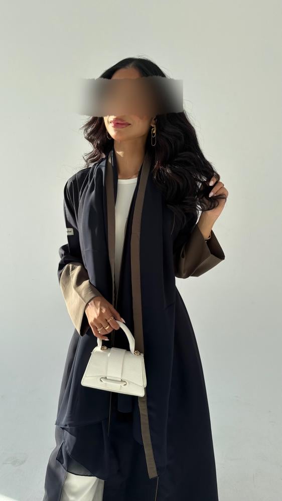 القماش حرير مغسول باللون الكحلي والاكمام بالزيتي